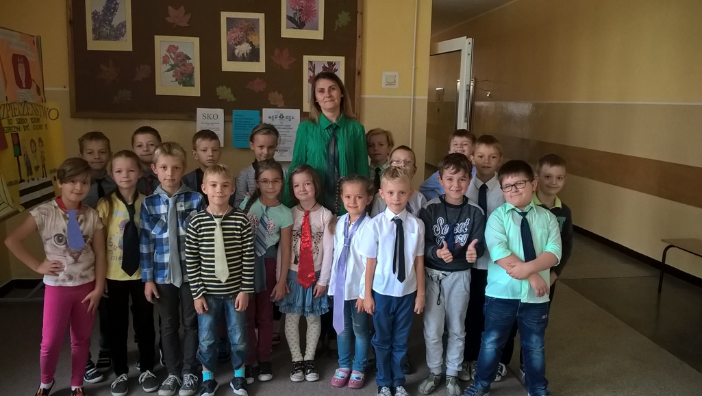Tego dnia chłopcy i dziewczynki przyszli do szkoły z założonymi krawatami. Krawaty były pożyczone od taty, od dziadka czy starszego brata. Uczniowie prezentowali się bardzo wytwornie.